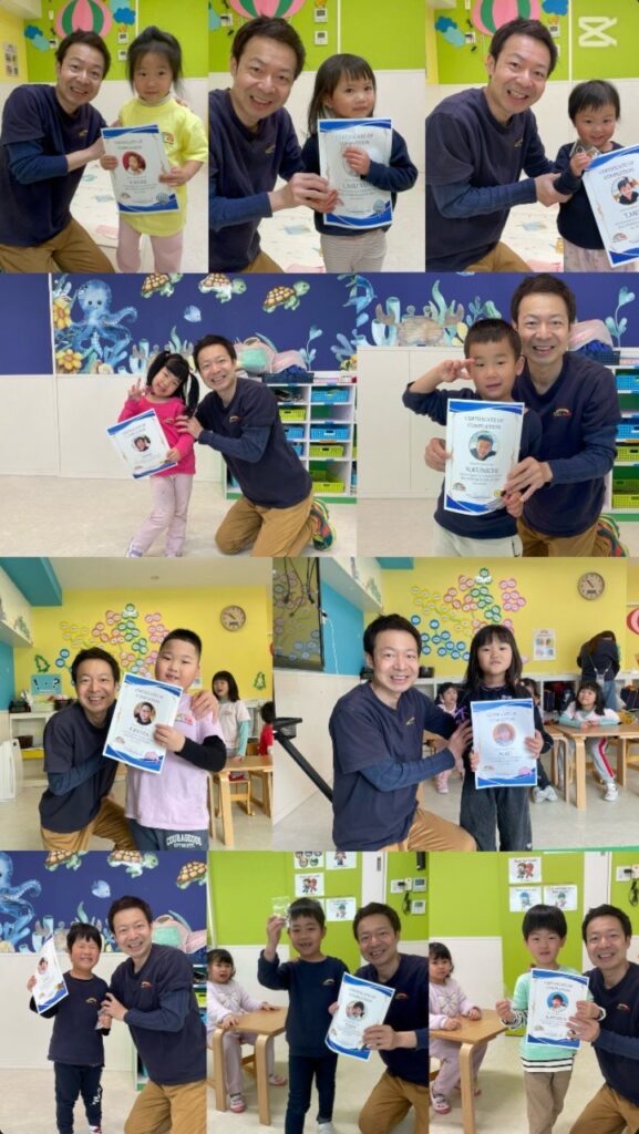 式では、園長より一人ひとりへ修了証と進級キーホルダーが手渡されました。