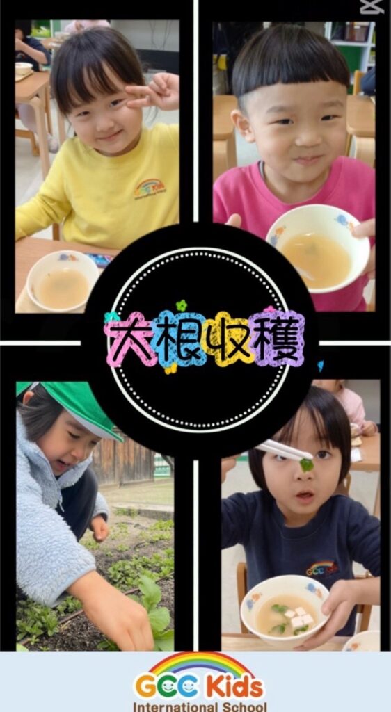 今年はPenguinクラス🐧とDolphinクラス🐬で大根を植えました。子どもたちは定期的に水やりをしながら、毎日成長を楽しみに大切に育ててきました。