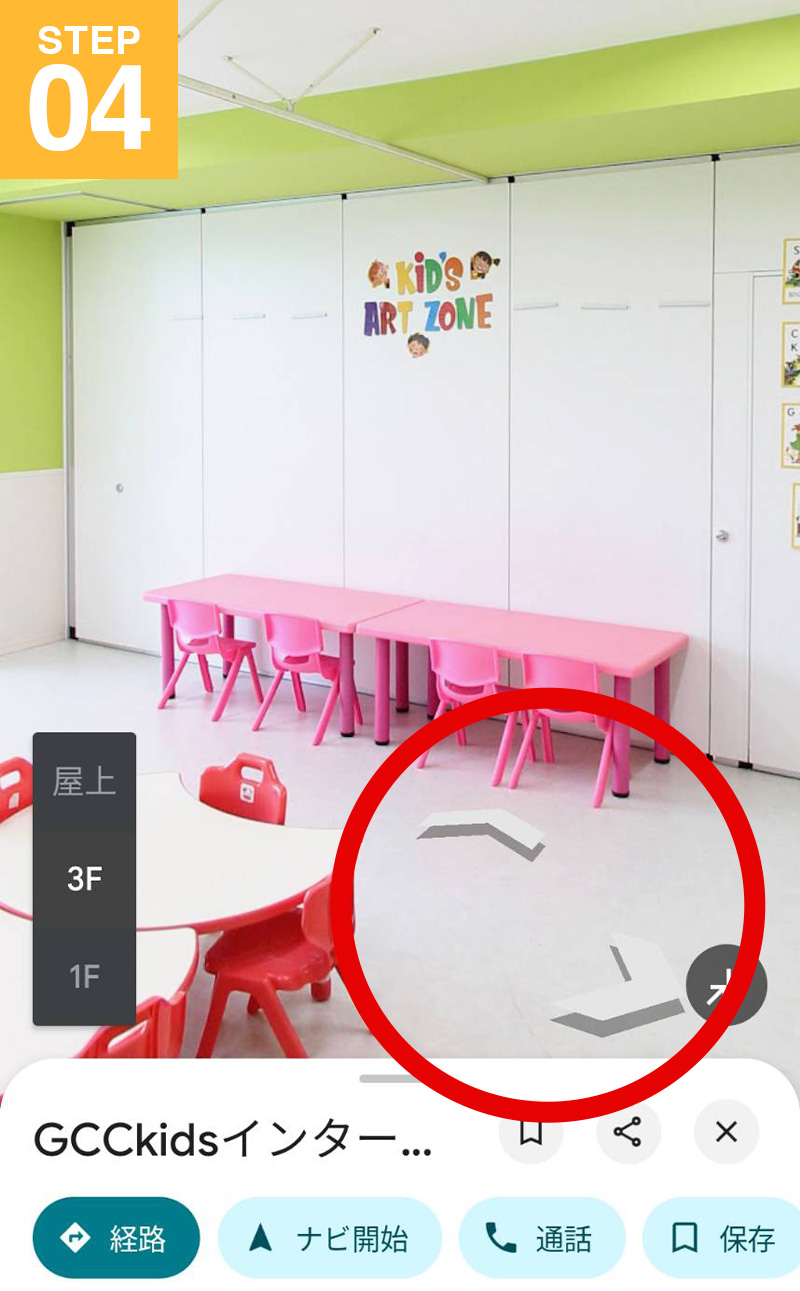 「ストリートビューと360°ビュー」をクリックし、見学したい場所を選択します。